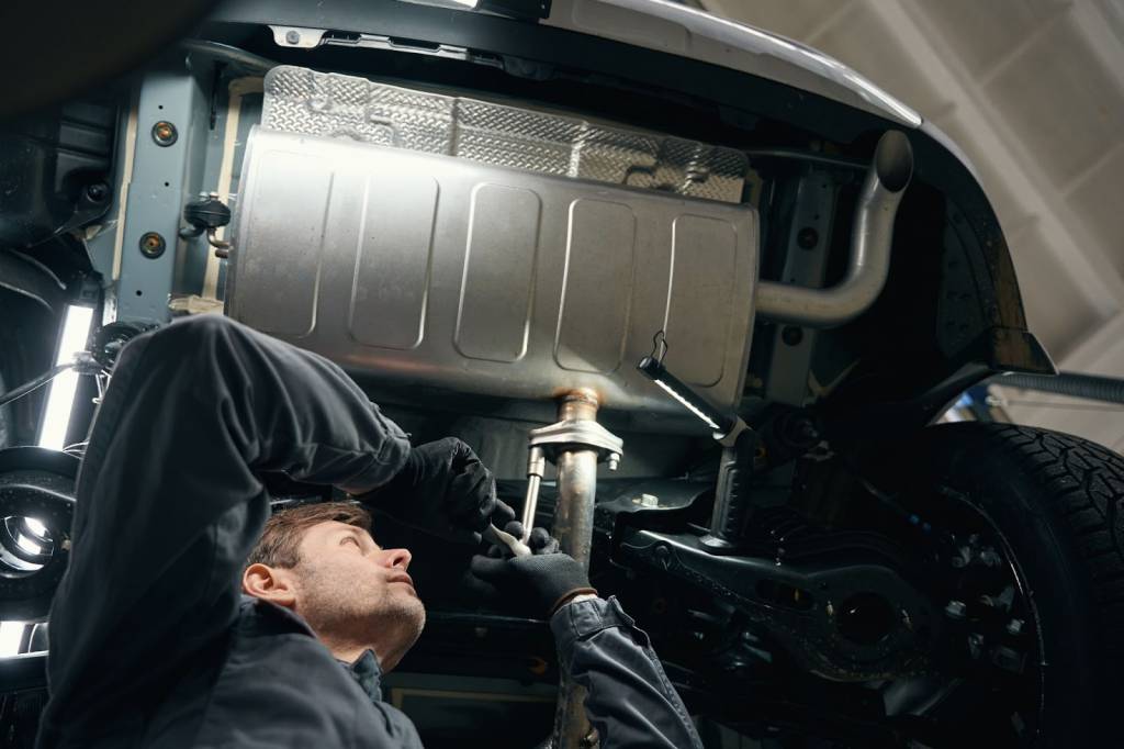 The process starts with raising the vehicle to check the entire exhaust system. Mechanics look for cracks, leaks, rust, or detached parts. They also check hangers and connections to confirm structural stability. Documenting visible issues gives customers a clear view of the problem. This step sets the foundation for accurate diagnostics and repair planning.